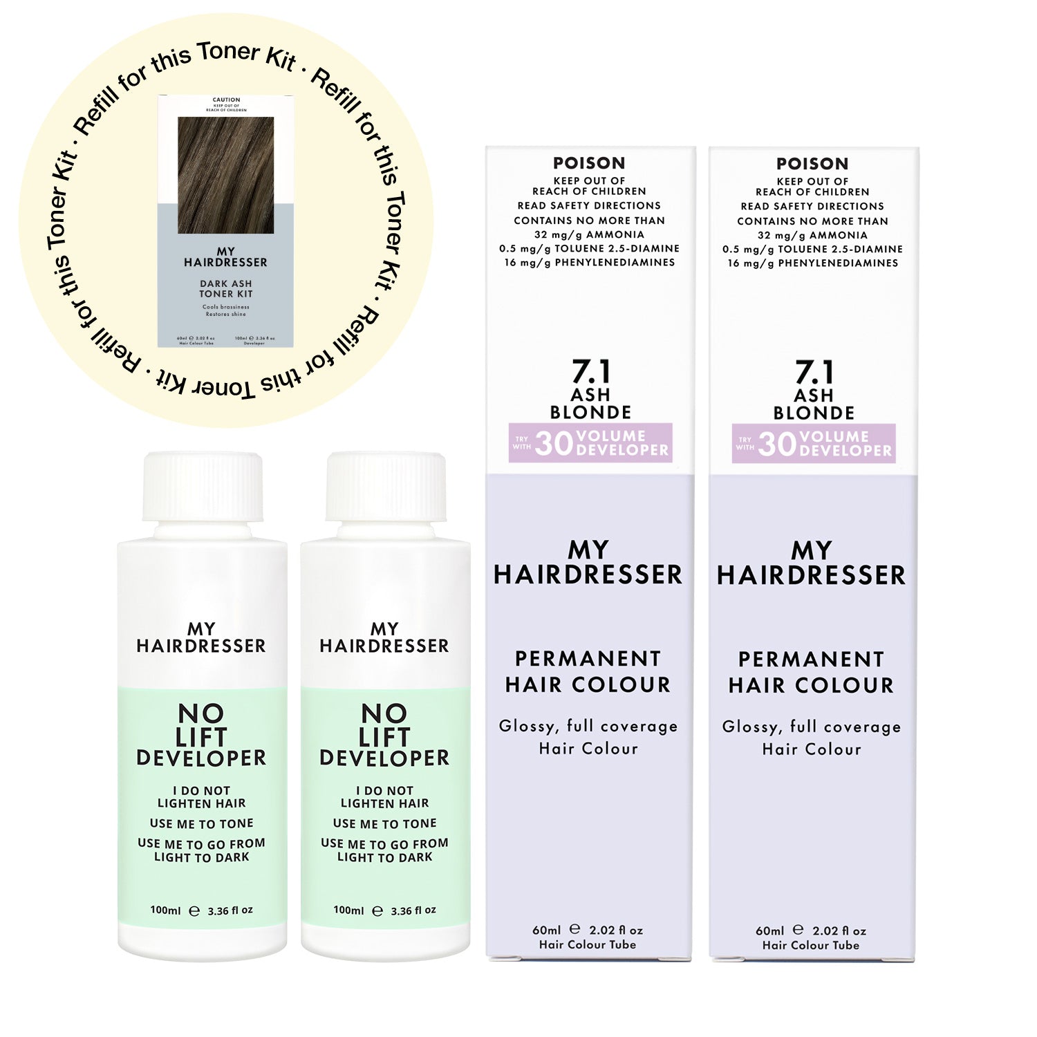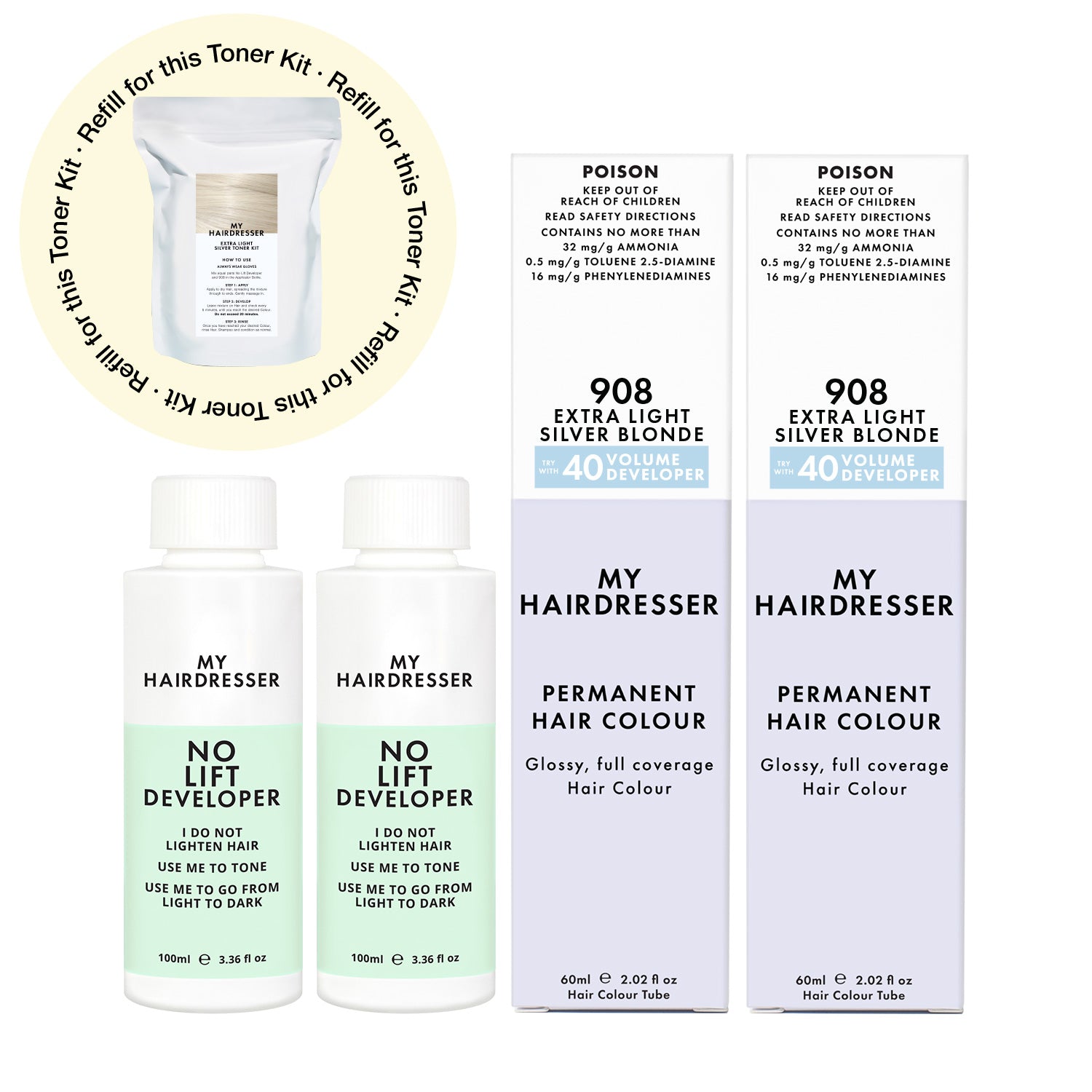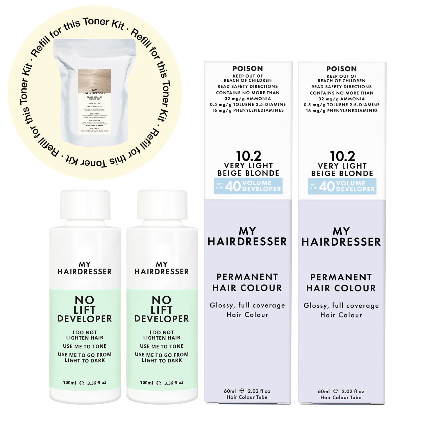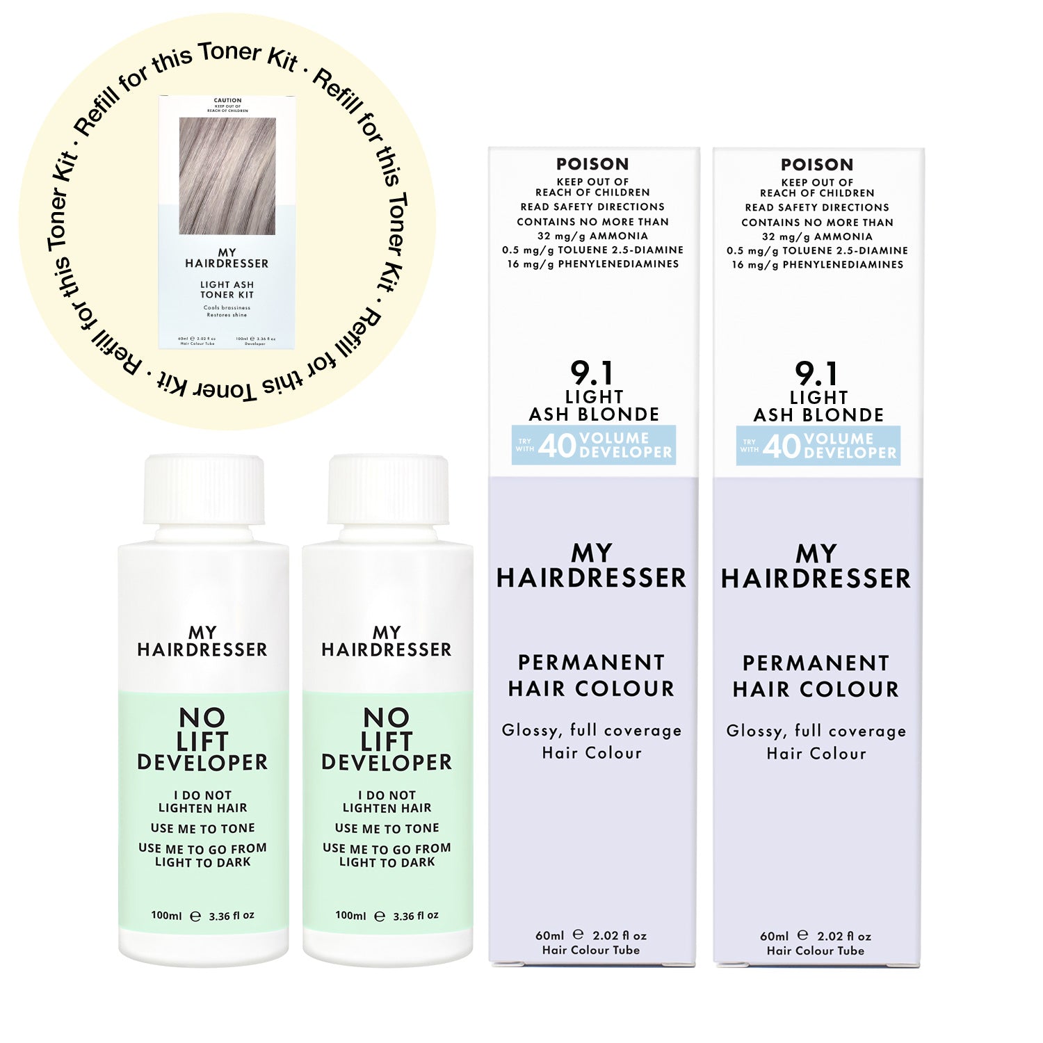 Already got your Applicator Bottle? Perfect — this Top Up includes your Toning Essentials: Cool Colour and No Lift Developer. Just mix in your existing bottle and apply for a salon-quality, glossy Tone.