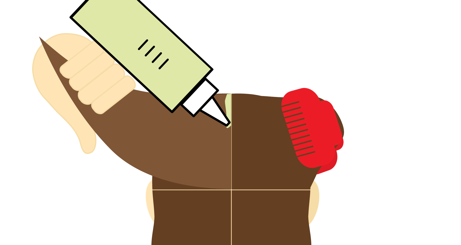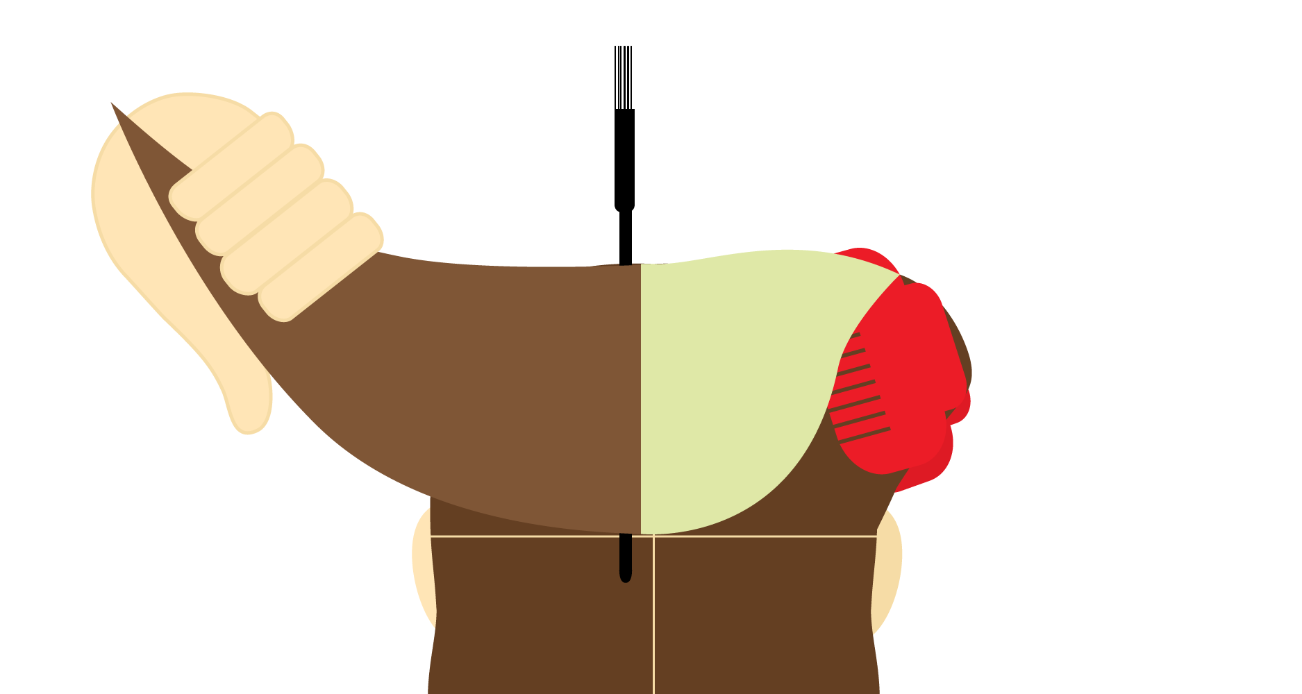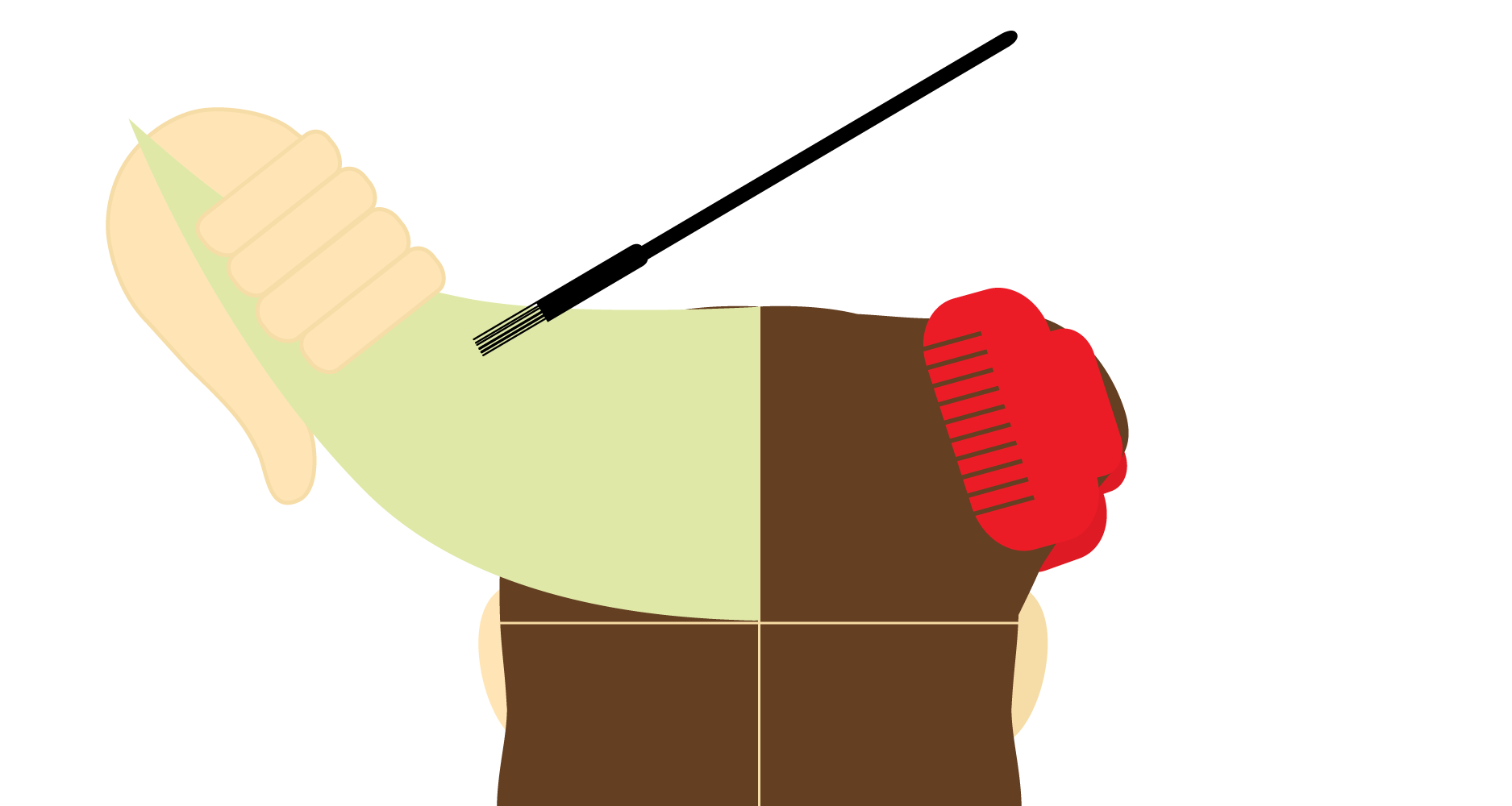 Beginning in either Top Section, guide the pointy end of your Tint Brush through the entire width of the Hair Section to create a row that is around 1-1.5cm thick, leaving the rest of your Hair section behind. Pull the Hair tight to define your working area.