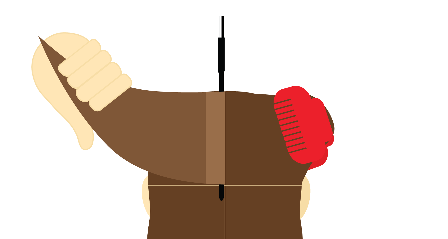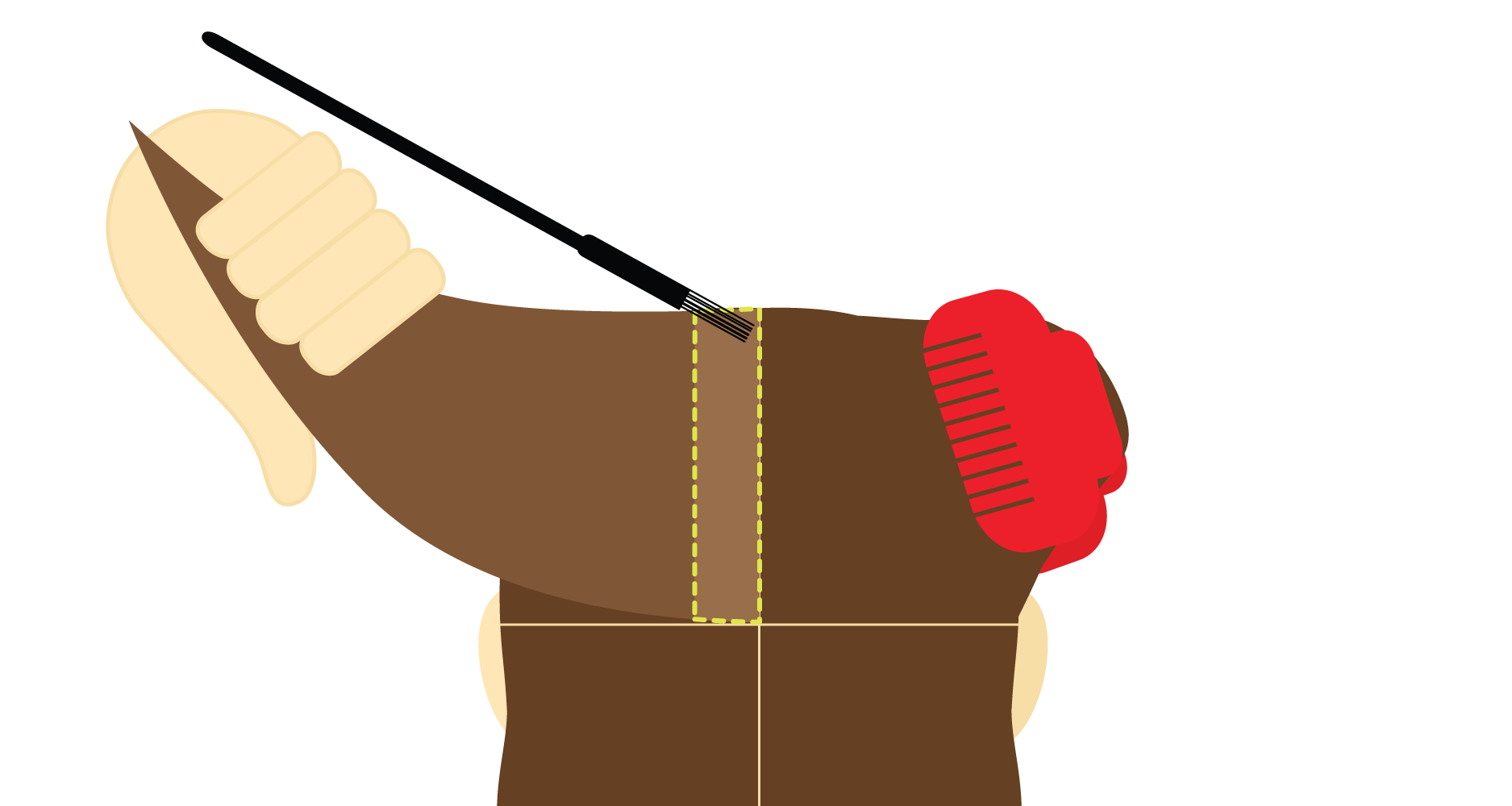 Beginning in either Top Section, guide the pointy end of your Tint Brush through the entire width of the Hair Section to create a row that is around 1-1.5cm thick, leaving the rest of your Hair section behind. Pull the Hair tight to define your working area.